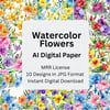 Watercolor Floral AI Digital Papers with MRR License