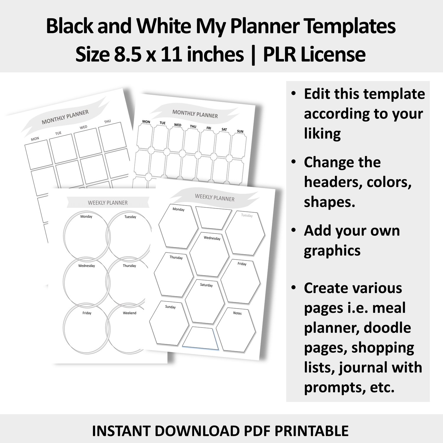 My Planner Templates - Black and White with PLR License