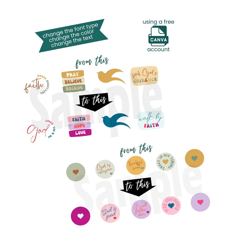 Editable Christian Sticker Pack – 18 Faith-Inspired Designs